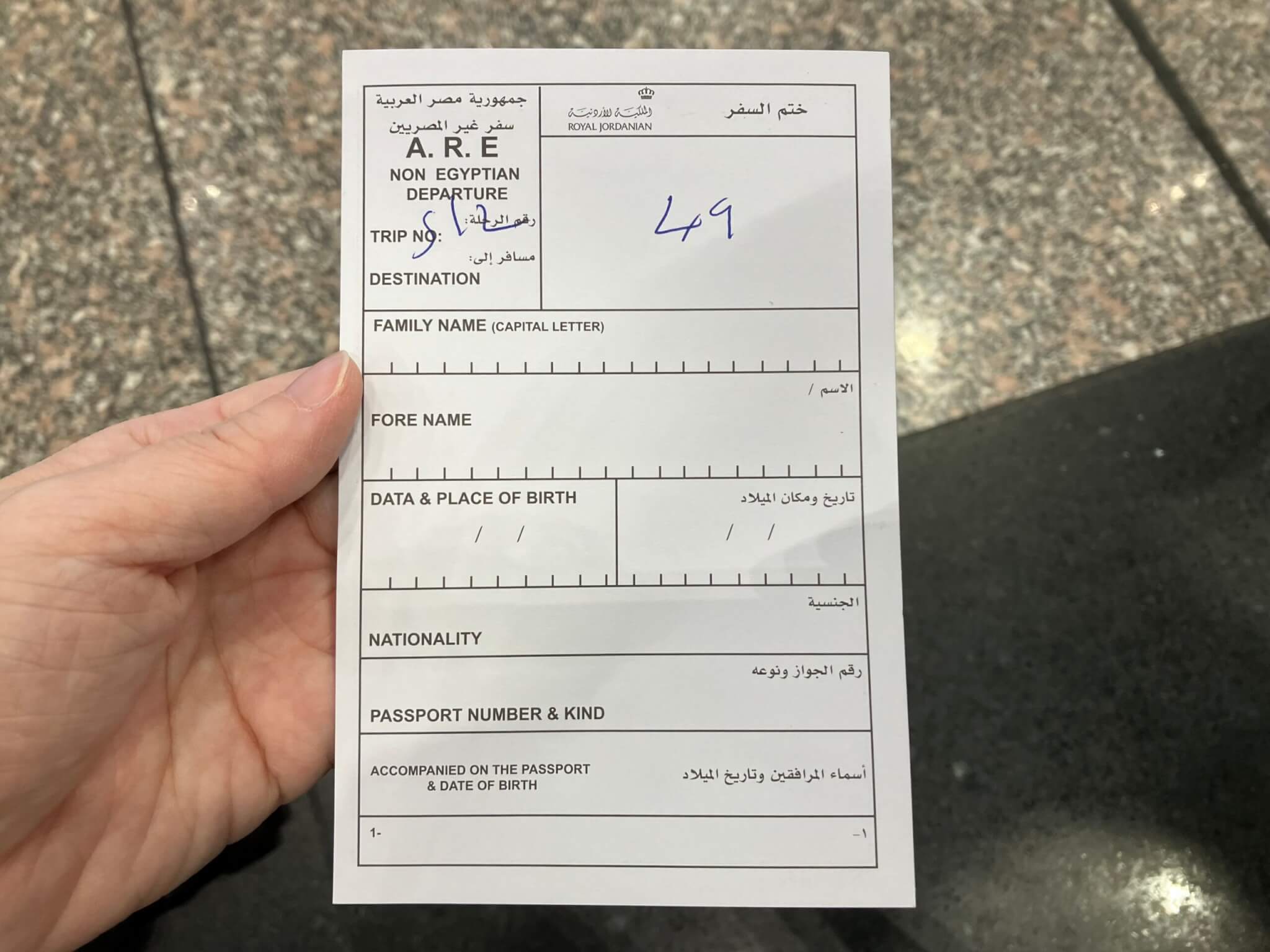 エジプトの出国カードは、搭乗手続き中にグランドスタッフさんから配布されました。記入用のボールペンを持参しておくとスムーズです。