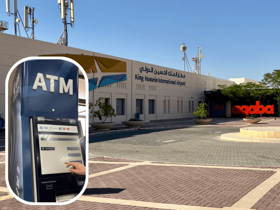アカバ・キング・フセイン国際空港の到着ロビーには、ATMがありました。手数料は3.3%と高かったです。