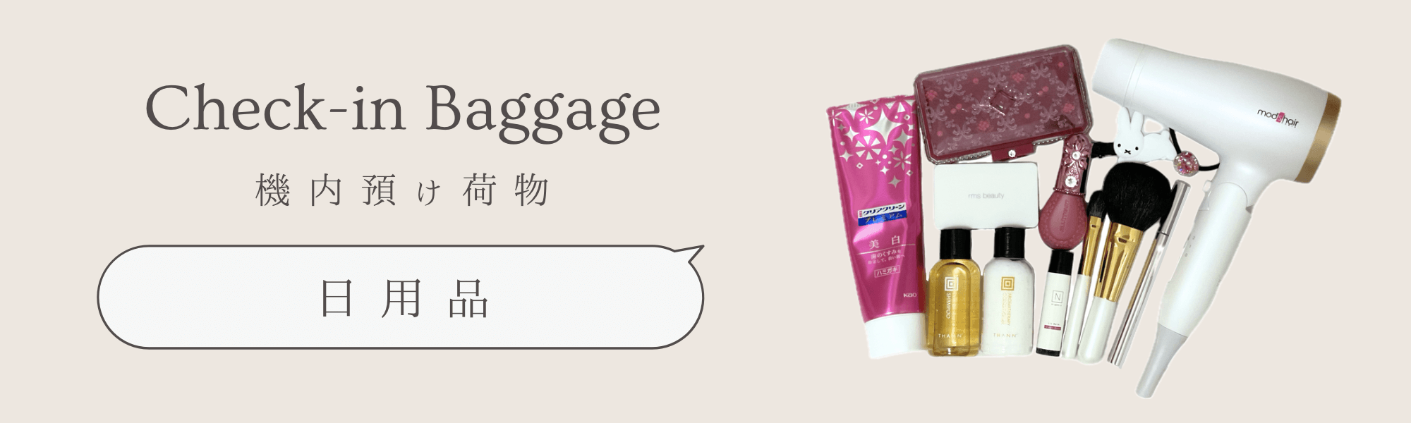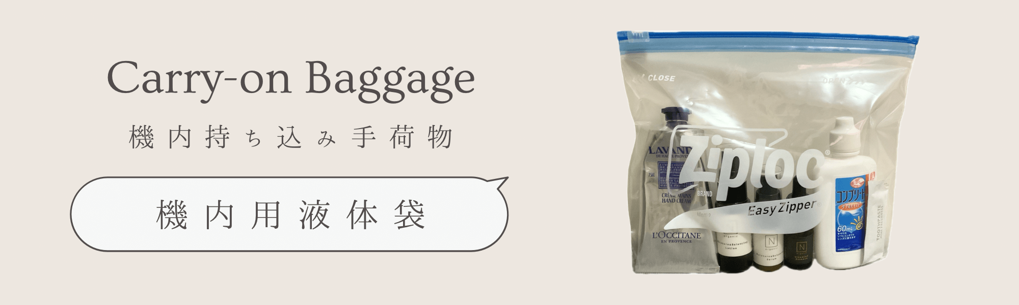 歯磨き粉や化粧水などの液体は、ジッパー付きプラスチック袋の中に入れましょう。