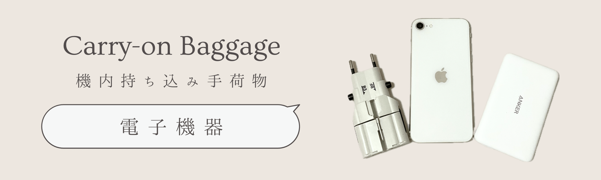 貴重品に該当する電子機器やモバイルバッテリーは、機内持ち込み手荷物としてまとめます。