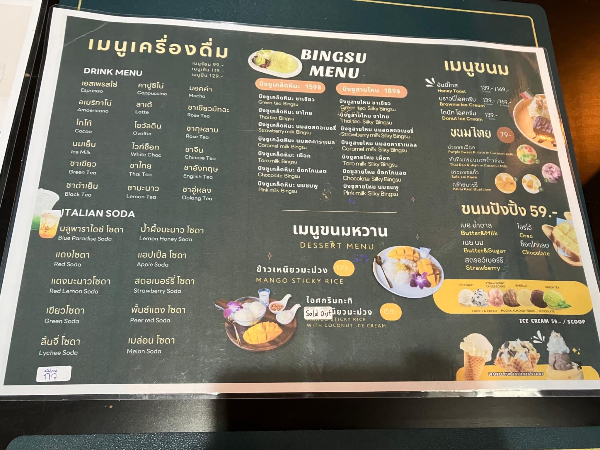 基本料金にはドリンク1杯が含まれており、私たちはタイティとソーダを注文しました。食事やデザートは別料金となっています。