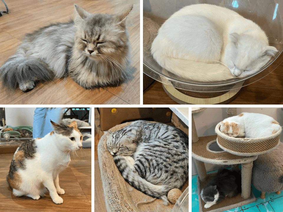2階には猫とウサギがいました。直接的なふれあいは控えめで、近くでじっくり観察するという楽しみ方がメインでした。