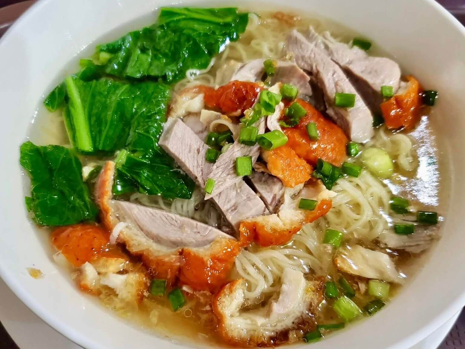 ローストダックヌードルは、中華麺の上に、ローストダックと野菜がトッピングされた一品です。