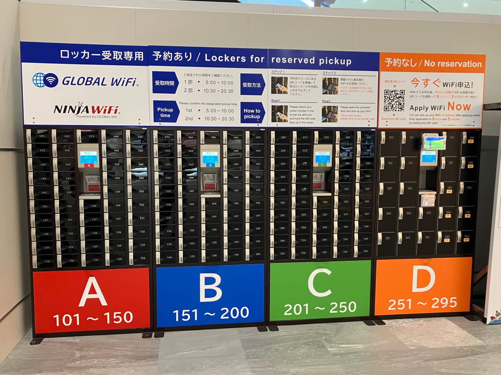 今回はグローバルWiFiを利用しました。事前にウェブで予約を行い、福岡空港国際線ターミナル1階で現物を受け取りました。