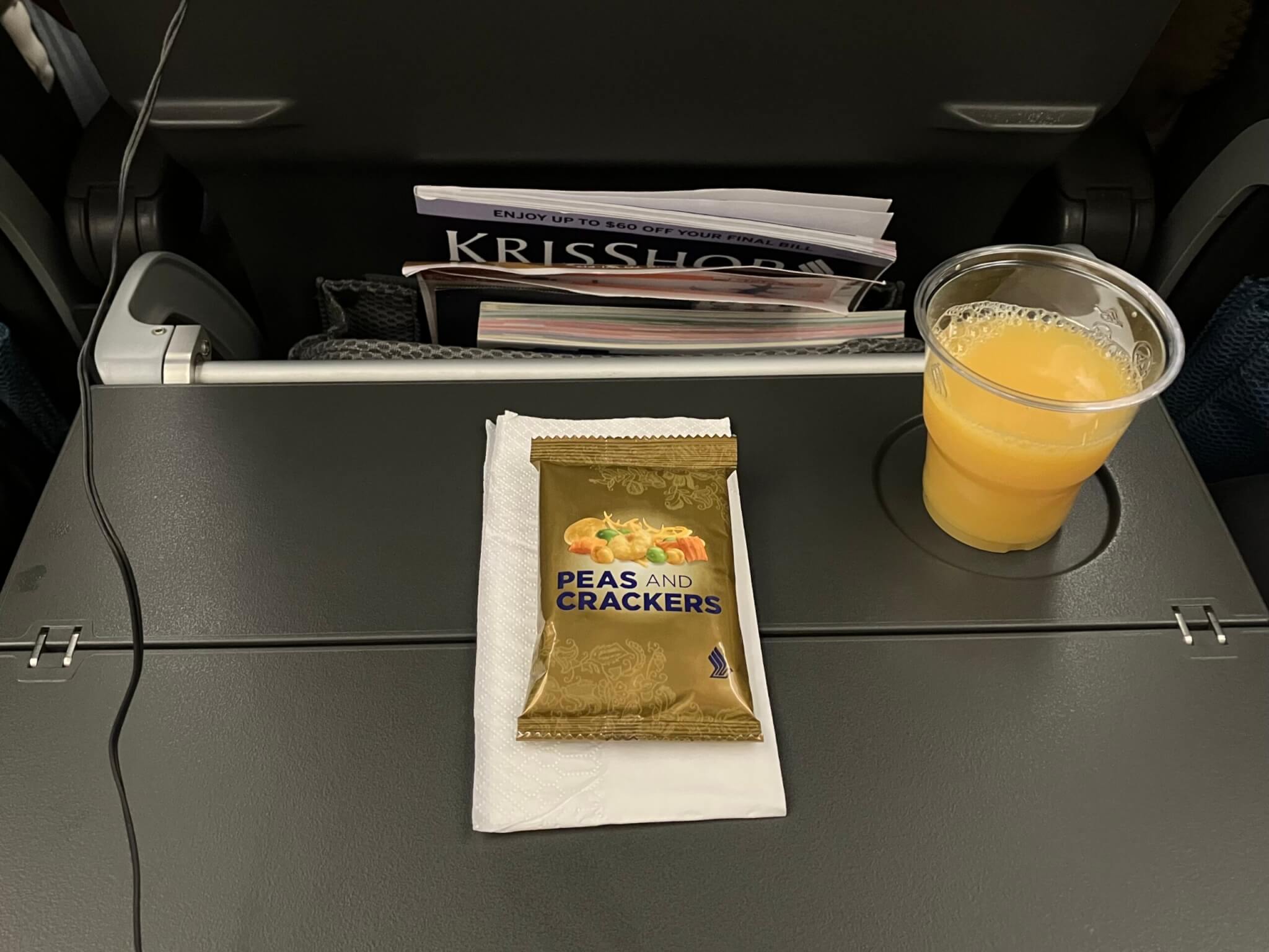 福岡空港からチャンギ国際空港までの便では、日本時間11時頃に機内食が1回提供されました。