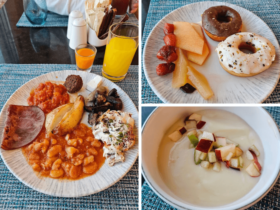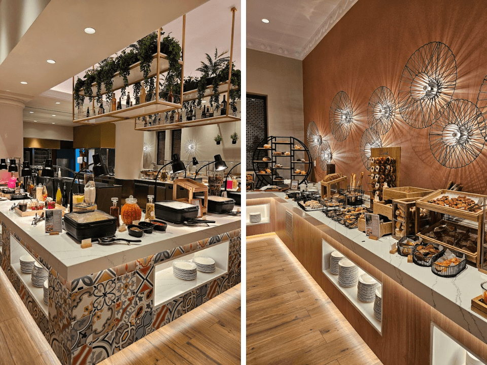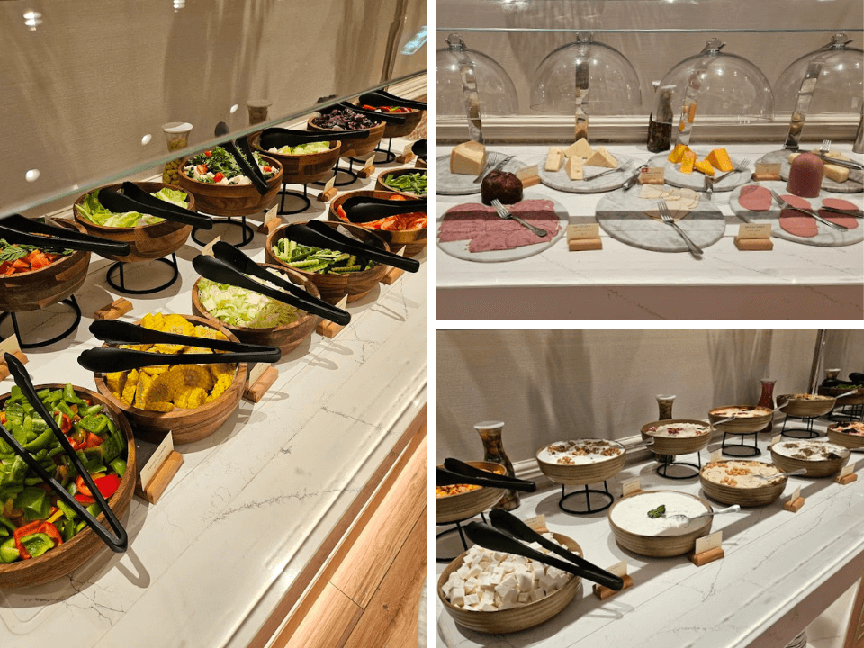朝食はビュッフェ形式(セルフサービス)です。メニュー数は豊富で、中東・欧米で定番の朝食メニューが揃っていました。