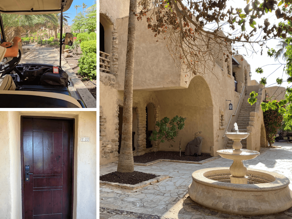 各施設には、徒歩または電動カートでアクセス可能です。私たちは歩きましたが、客室から死海まで片道10分程度の距離でした。