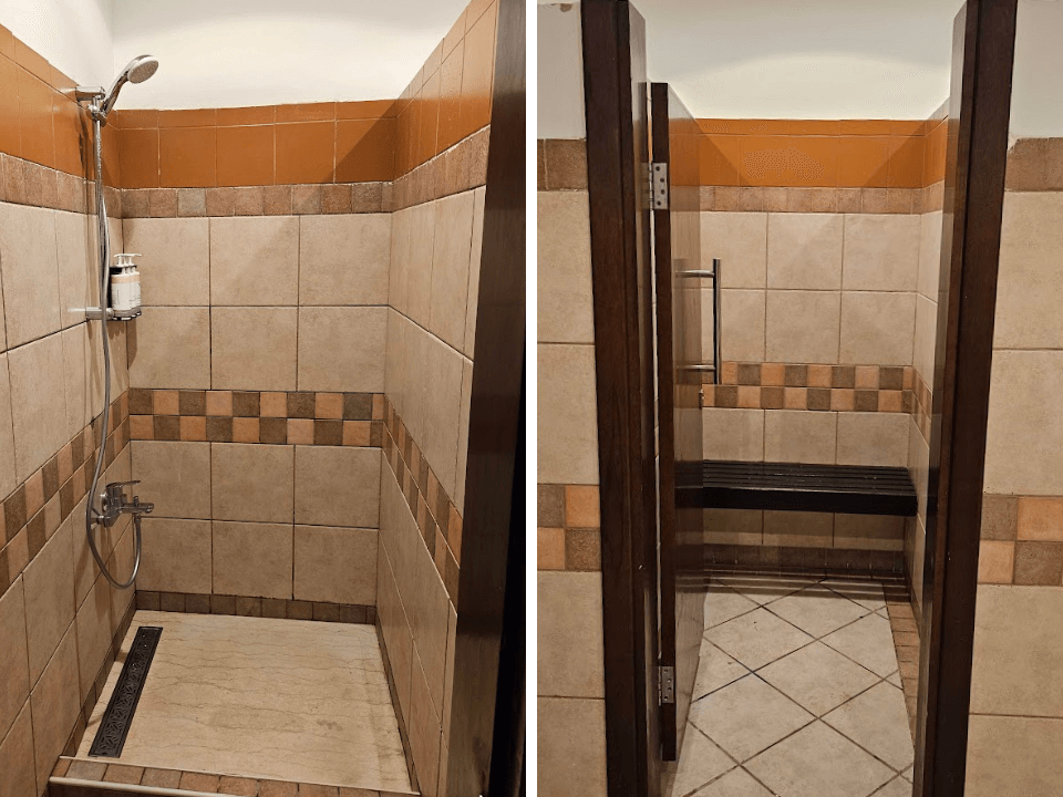 更衣室(男女別)は2カ所にあります。脱衣所・トイレ・洗面台・シャワーブースがあり、同時に複数人が利用できる広さでした。