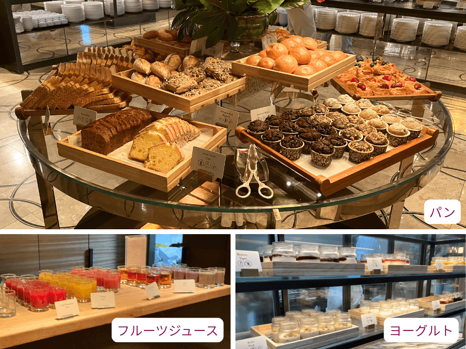 ビュッフェ台は分散しており、見落とさないようにするのが大変でしたが、メニュー数が豊富で取りに行くのが楽しかったです。