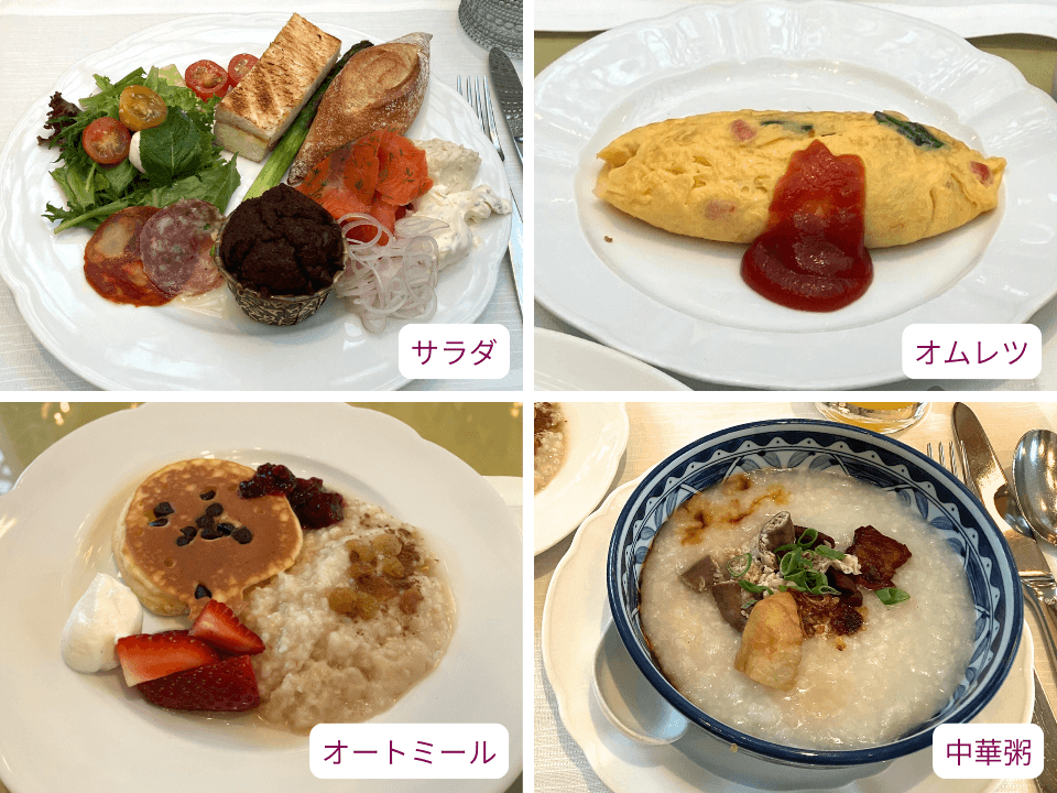 オムレツや中華粥など一部のメニューは、具材などの希望を伝えて、その場で調理してもらえます。出来立て熱々の状態を味わえました。