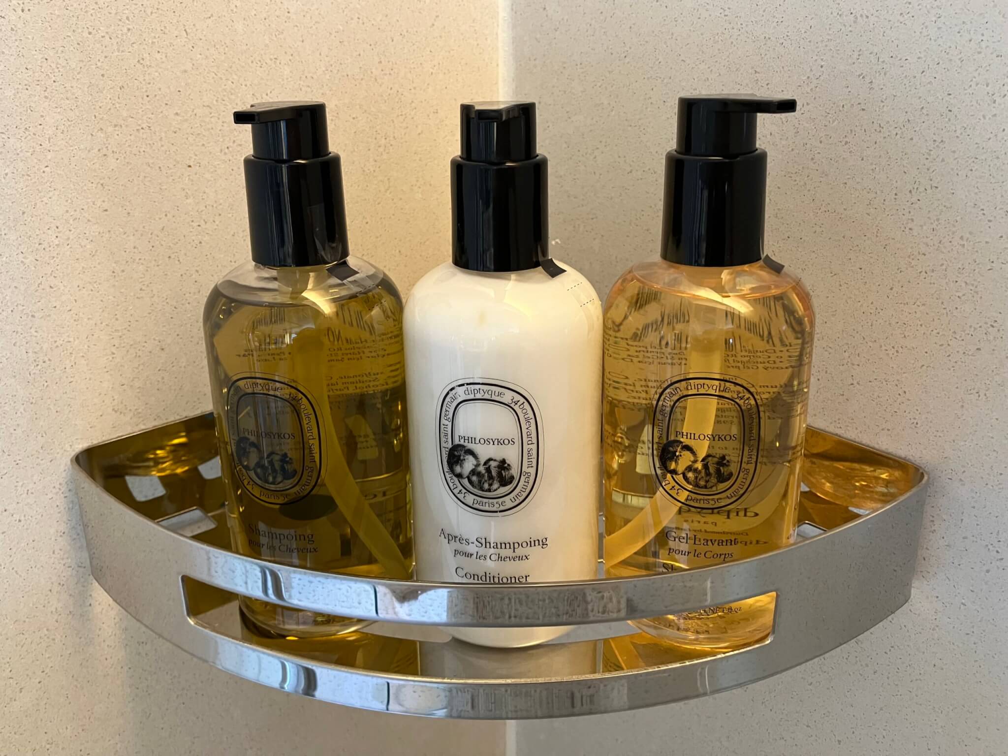Diptyqueのシャンプー・リンス・ボディソープ・ボディクリームは、ボトルで用意されており、持ち帰る場合は有料となっていました。