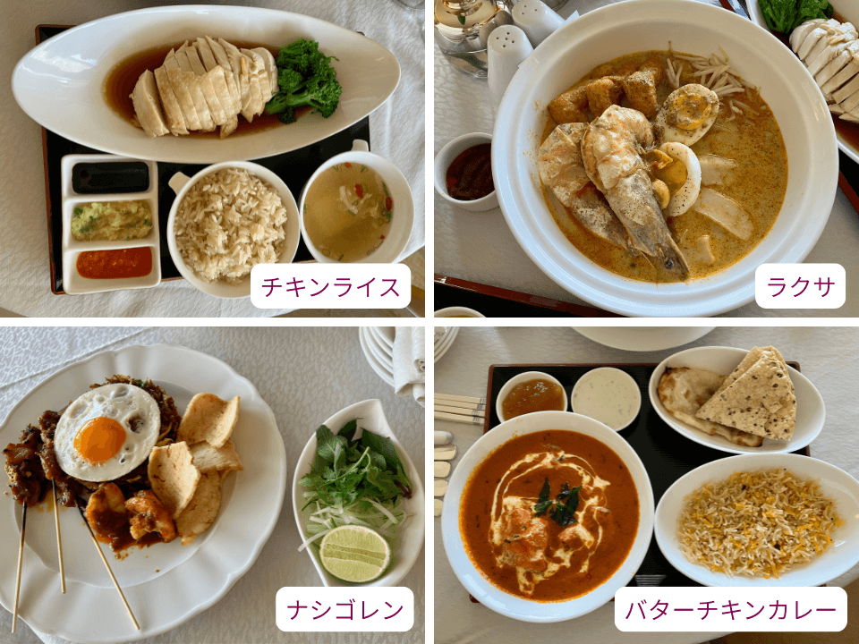 シンガポール料理は、カヤトースト・ナシレマ・バクテーなどがありました。中華料理やインド料理も充実しており興味深かったです。