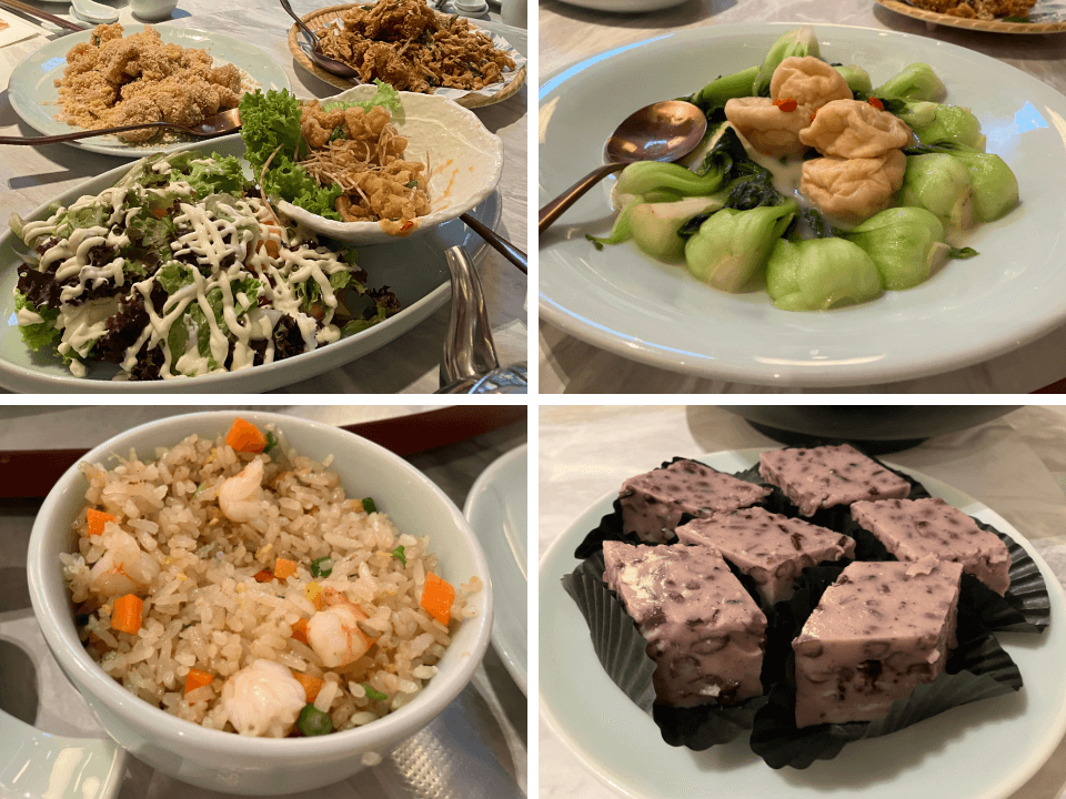 メインのチリクラブの他には、イカの揚げ物とサラダ・エビの炒め物・鶏の唐揚げ・魚豆腐と季節の野菜・チャーハンなどを食べました。