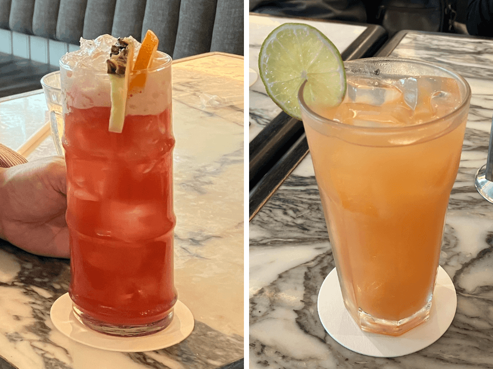 私たちはドリンクのみ注文しました。シンガポールを代表するカクテル「シンガポールスリング」やジュースなどを楽しみました。