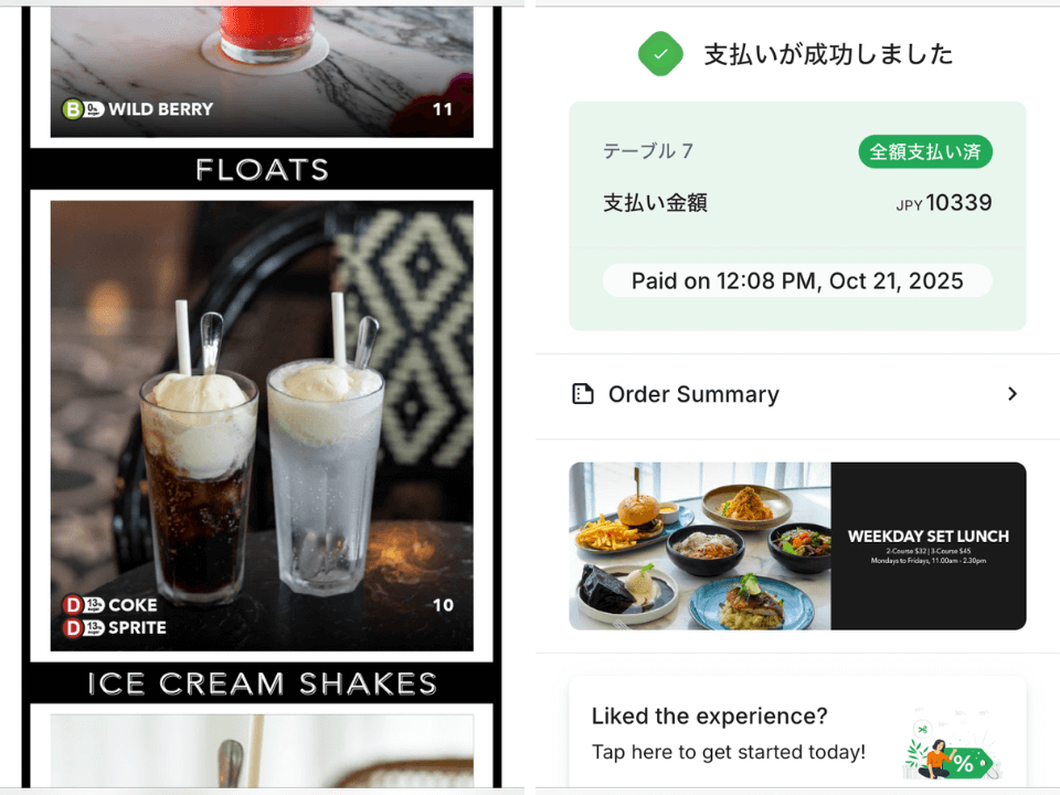 店内にはソファ席とイス席がありました。スマホを使ってQRコードから注文を行い、最後にレジでお会計をする流れでした。