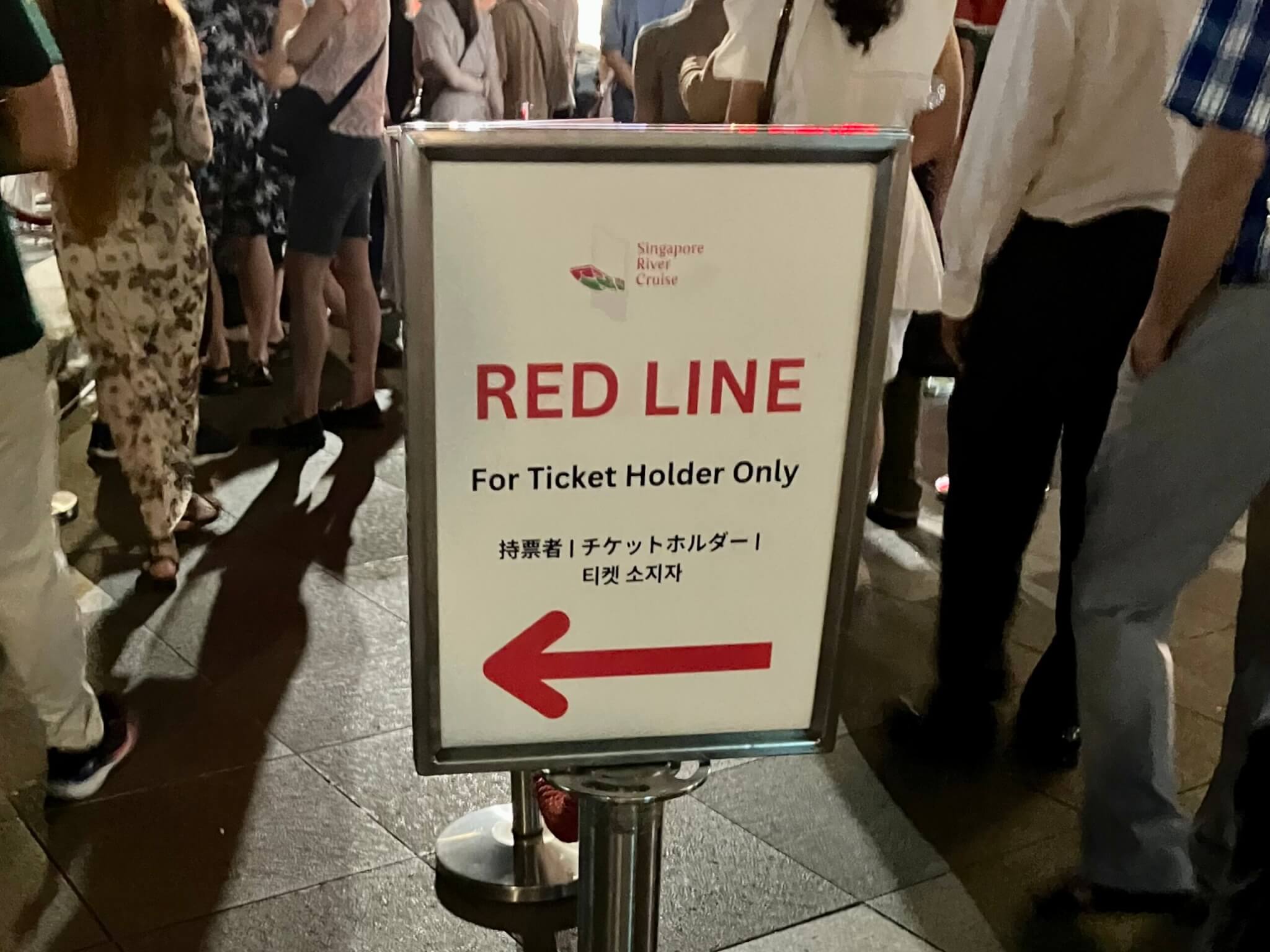 紙のチケットを受け取った後は、乗船待ちの列に並びました。レッドラインは個人向け、ブルーラインはツアーグループ向けでした。