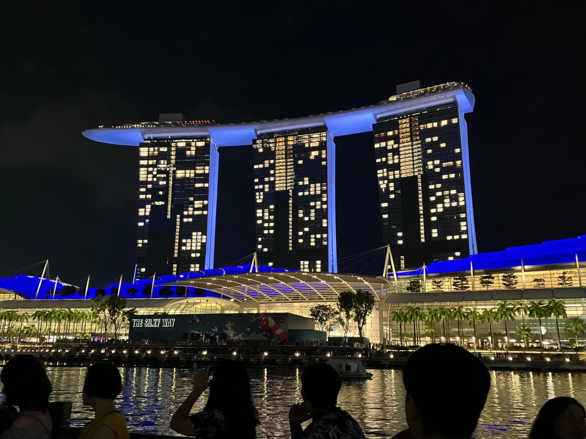 マリーナ湾を半周ほど進んだところで、圧倒的な存在感を放つ、マリーナベイサンズが現れました。近未来的な景観を存分に楽しめました!